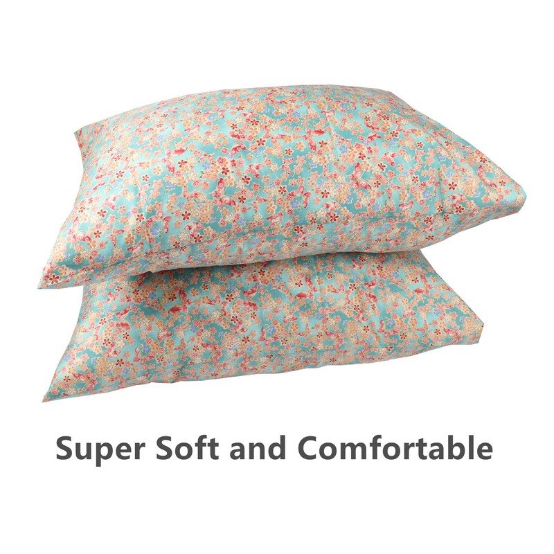 Floral Pillowcase Set of 2, Queen Size Ultra-Soft Cotton Pillow Covers with Envelope Closure, Breathable, Easy to Wash