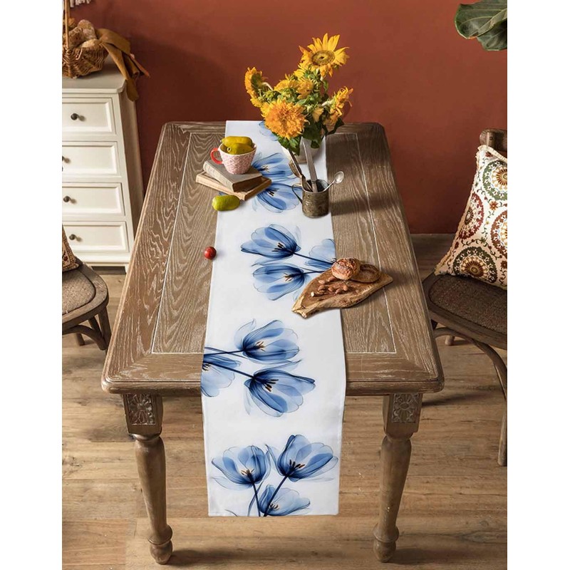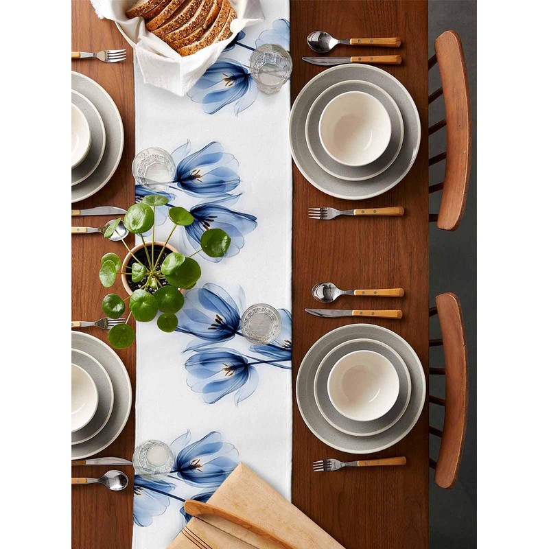 - Fashionable Print: This stylish Blue Tulip Ray Flower Table Runner is made of cotton linen, and soft.Blue Tulip Ray Flower Table Runner bring a casual accent to a table setting and mix well with a variety of patterns. Cotton linen Blue Tulip Ray Flower Table Runner is perfect for casual get-togethers or everyday dining
