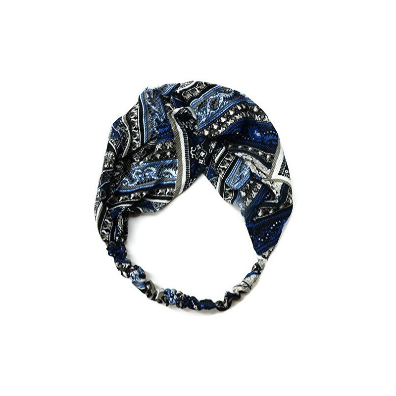 Floral Twist Knot Headband Elastic Wrap Turban Hair Band Yoga Sports Lady (Boho Blue)