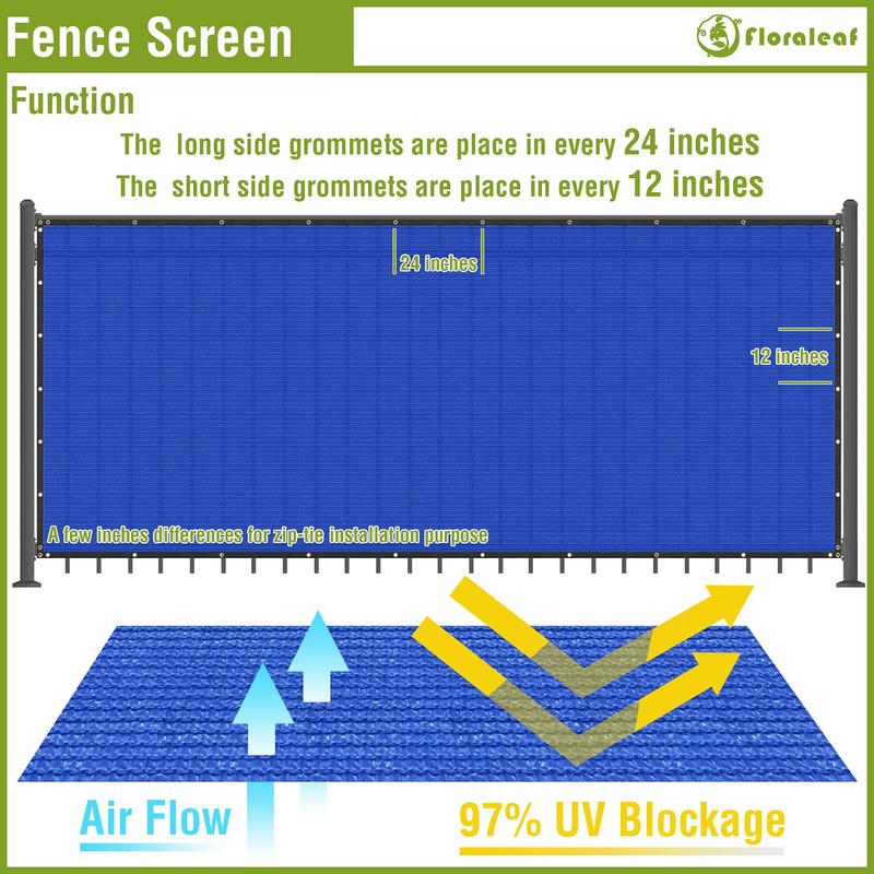 FLORALEAF 8' x 29' Blue Fence Privacy ScreenCommercial Outdoor Backyard Shade Mesh Fabric 90% Blockage Net Cover for Wall Garden Yard Backyard (Customized Available) with Zipties