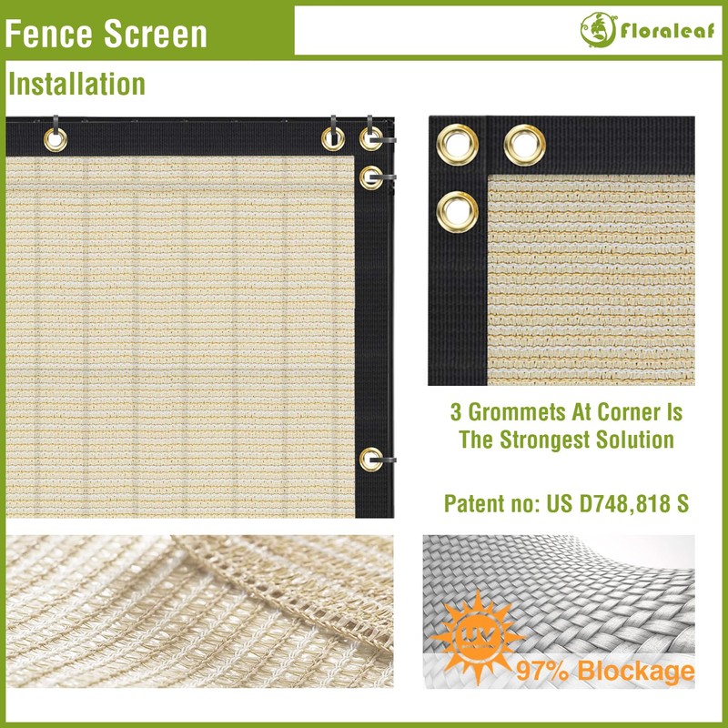 - Easy to Install - Edges are finished with heavy duty bindings and stainless copper grommets, all stitching are reinforced, Easy to Install with cable zip ties. Compared to 4 grommets on the market, our 3 grommets are more convenient and more stable fence screen. Comes with Zipties.