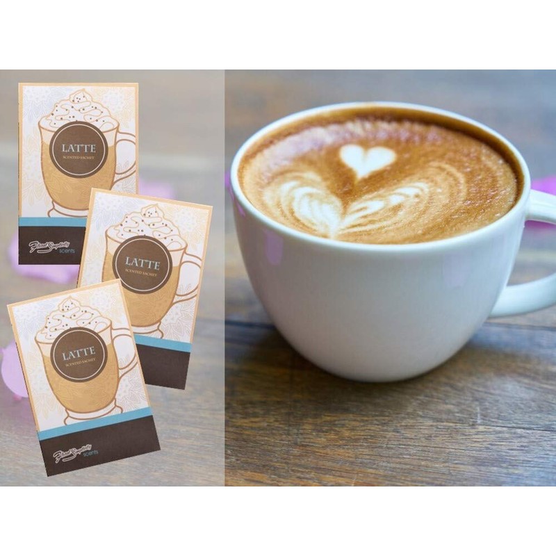 FloralSimplicity Latte Scented Sachets Pack of 3, Everyday - Long-Lasting Scented Bags, Home Fragrance, Air Freshener & Deodorizer for Closet, Room, Drawer, or Cars, Made in USA