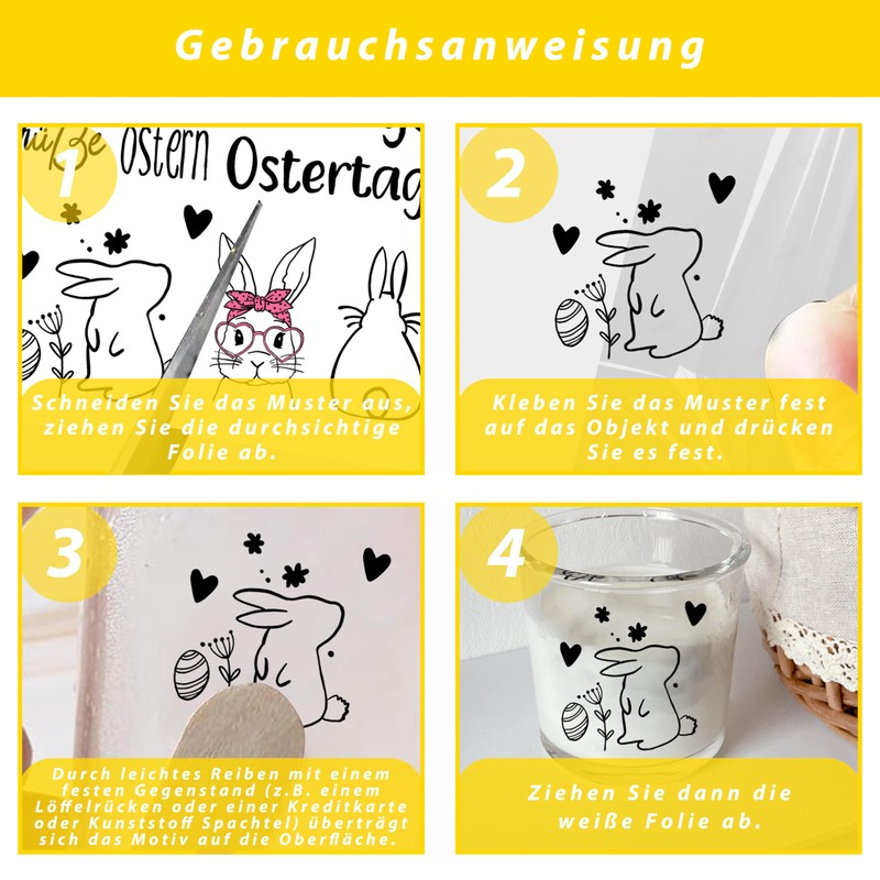 - Easy to use: Cut out the pattern, peel off the transparent film, stick the pattern firmly to the object and press it firmly. The pattern is transferred to the surface by gently rubbing with a solid object, such as the back of a spoon, credit card or wooden popsicles. Then peel off the thicker white film.