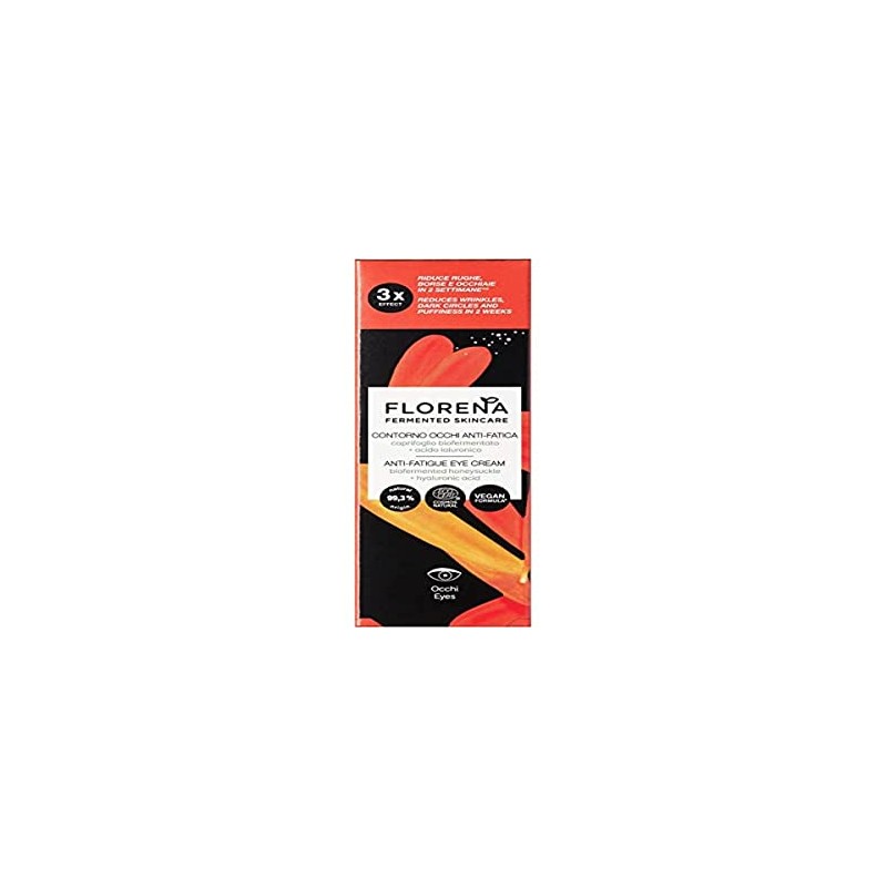 - Box contents: Florena fermented skincare, eye area hyaluronic acid and biofermented honeysuckle formula, 99.3% natural ingredients, 15 ml, item number 92725