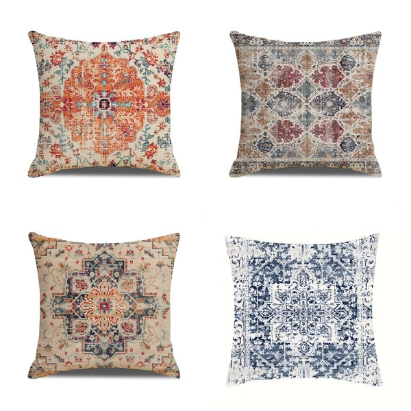 FLORICA Boho Throw Pillow Covers 18x18 inch Set of 4, Bohemian Carpet Pattern Soft Pillow Case Cushion Cover Pillowcase for Couch Sofa Bed Decorative