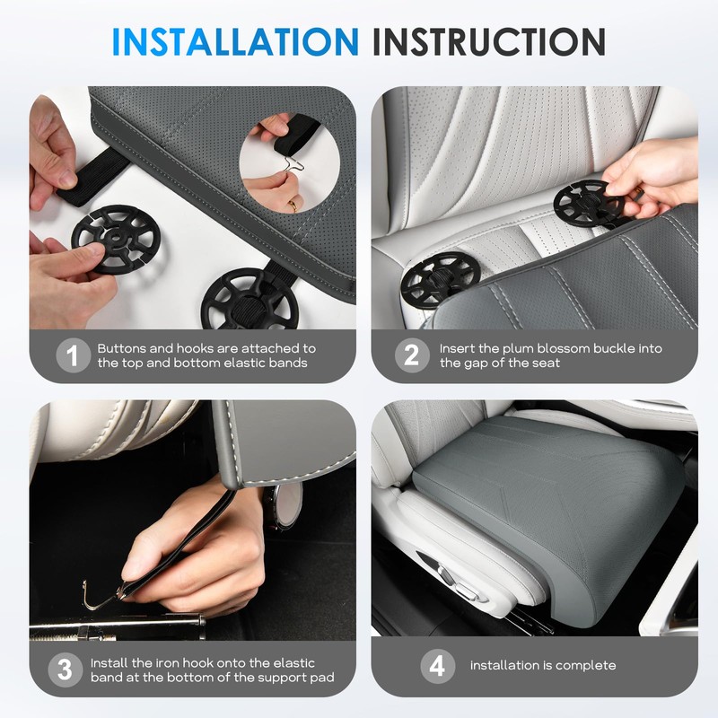 - 【 Through hole design, easy to install 】 Leg support cushion Using breathable and wear-resistant leather fabric with through holes, sitting for long periods of time without stuffiness, refreshing and comfortable, suitable for all seasons, and no tools required, just a few simple steps to install, suitable for most car models.
