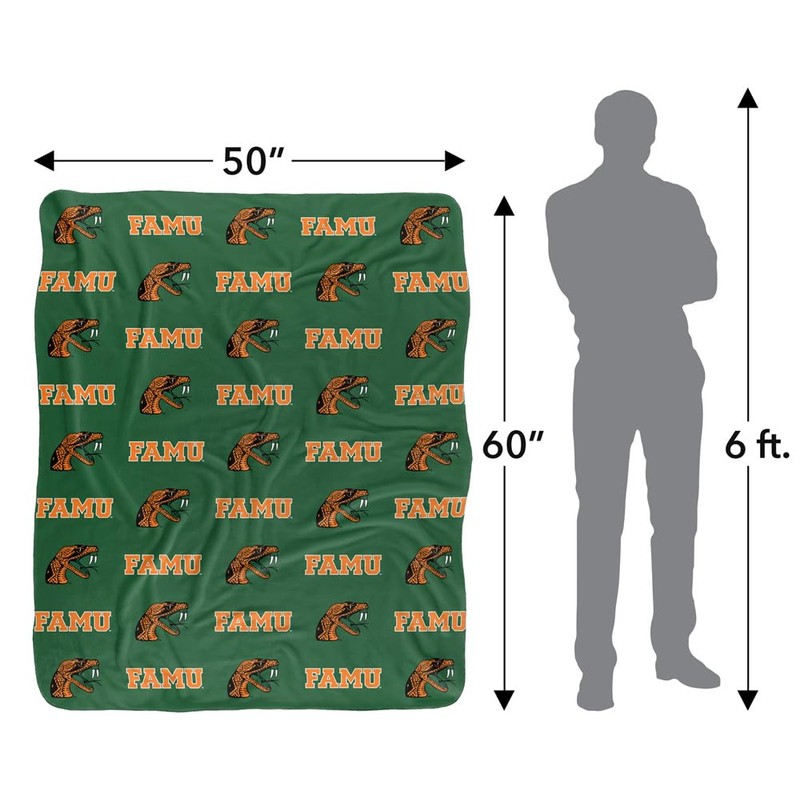 Florida A&M University Blanket, 50"x60" Logo Pattern, Silky Touch Sherpa Back Super Soft Throw Blanket