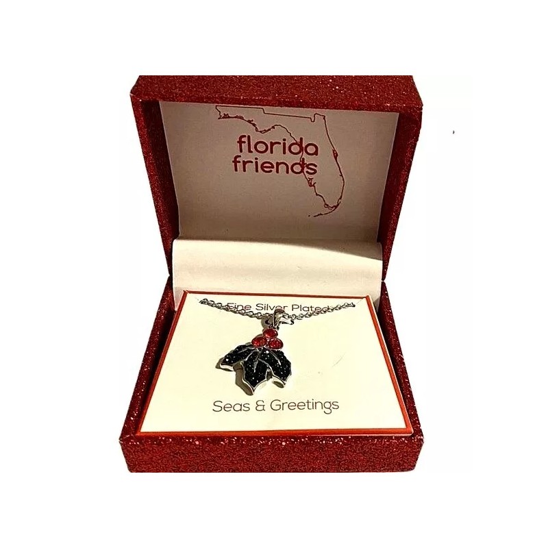 Florida Friends Silver Holly Sprig Necklace in sparkly gift box NEW SHIPS FREE