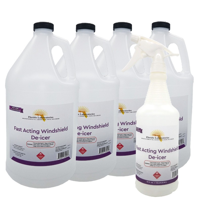 Florida Laboratories Fast Acting Windshield De-Icer - 1 Quart Spray Bottle w/ 4 Gallon Refills