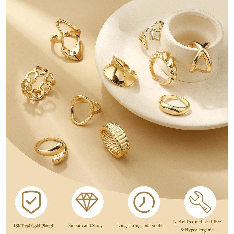 • Adjustable Gold Rings Set: Includes different style gold chunky rings, wide band ring, croissant dome ring, trendy statement ring, Open Twist Stackable Rings. These chunky gold stackable rings can be worn individually or stacked to add a touch of elegance, epitomizing the marriage of fashion and classic style.