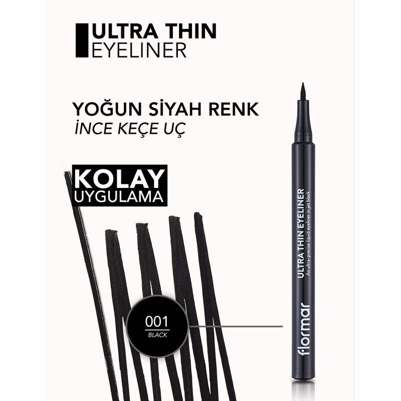 Flormar Ultra Thin Eyeliner Black - Waterproof Liquid Eyeliner with Precise Felt Tip, Highly Pigmented & Long-Lasting