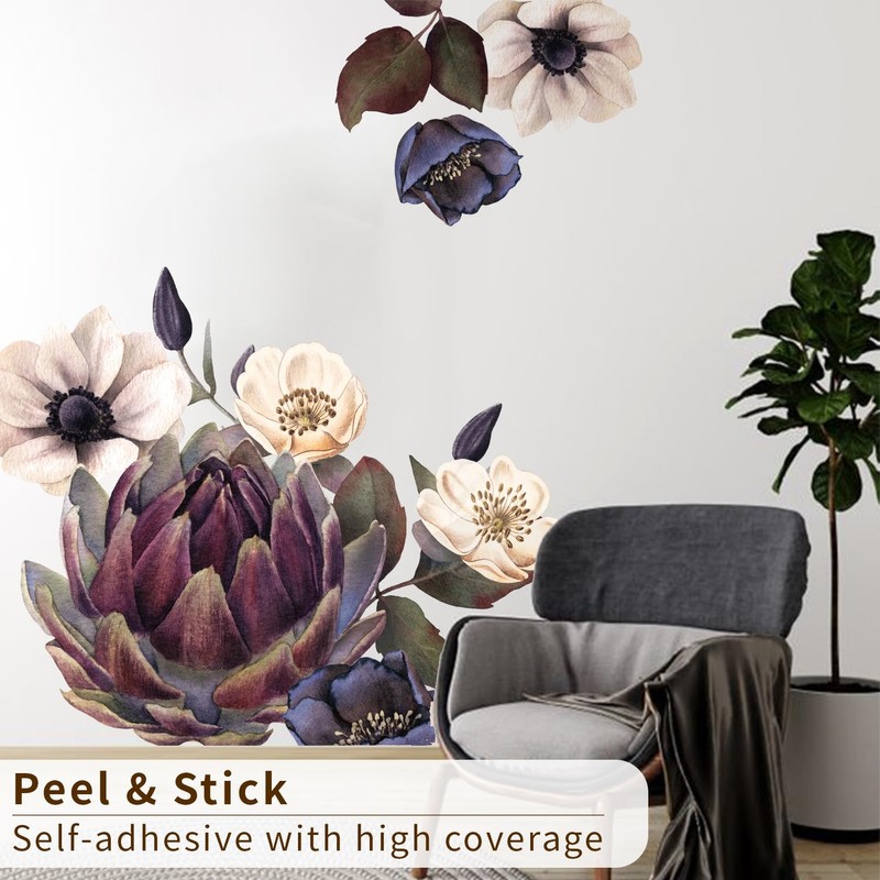 Flortlias Fabric Peel and Stick Floral Wall Decal, Self-Adhesive Peony Flowers Wallpaper, Rose Sticker for Living Room Bedroom Wall Decor, Eden Garden A-6 PCs