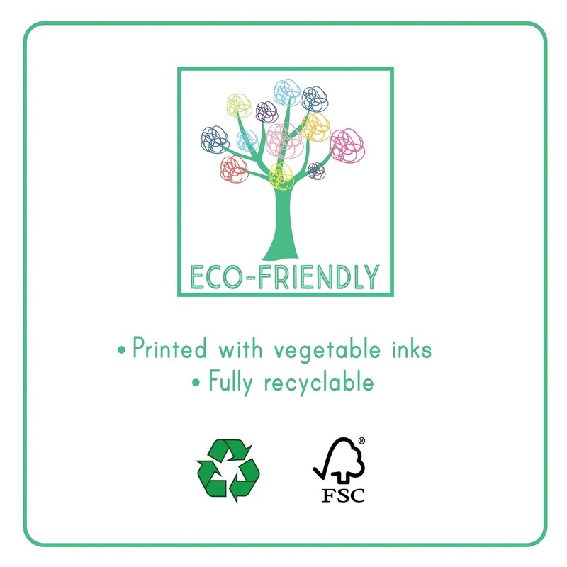 - This product prioritizes sustainability and eco-friendliness. It is FSC certified, ensuring that the materials used are responsibly sourced from well-managed forests. Additionally, the transfers are printed with vegetable-based inks, reducing the use of harmful chemicals and minimizing environmental impact.