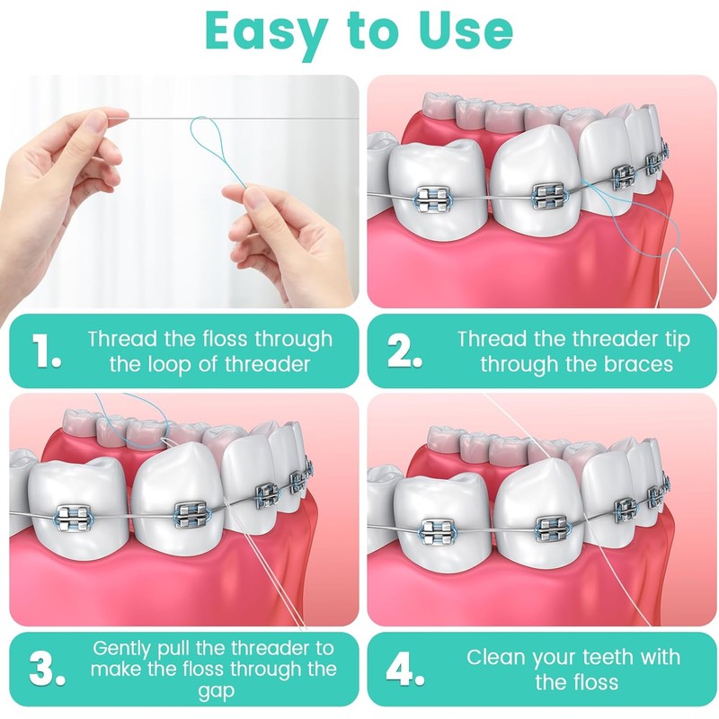 - Special Flossing Tool for Bridges & Braces: This floss threader is designed to thread the dental floss easily under orthodontic appliances, dental implants, permanent retainer and tight spaces between brackets, crowns. Great help for flossing.