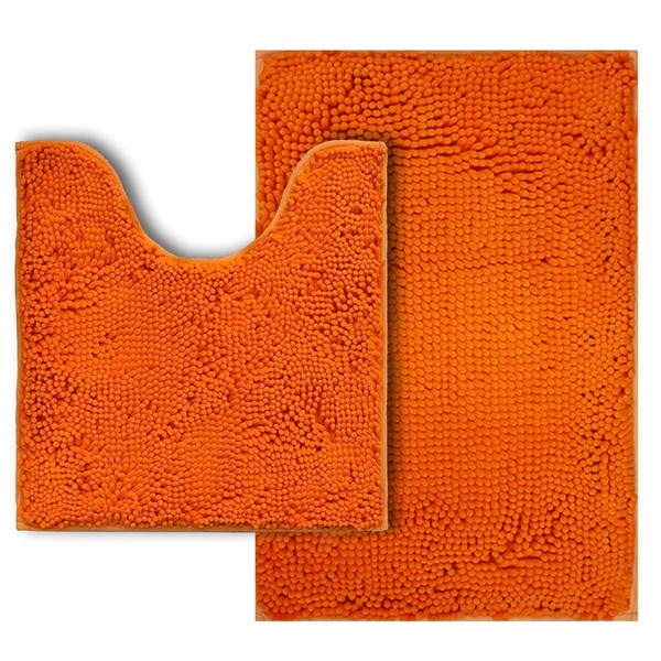Flotstiga Bathroom Rugs Sets 2 Piece,Super Absorbent Soft,Thick,Machine Washable Chenille Bath Mat,Non Slip Toilet Floor Rug,Bath Mats for Bathroom,20x32 Plus 20x20 U Shape,Orange