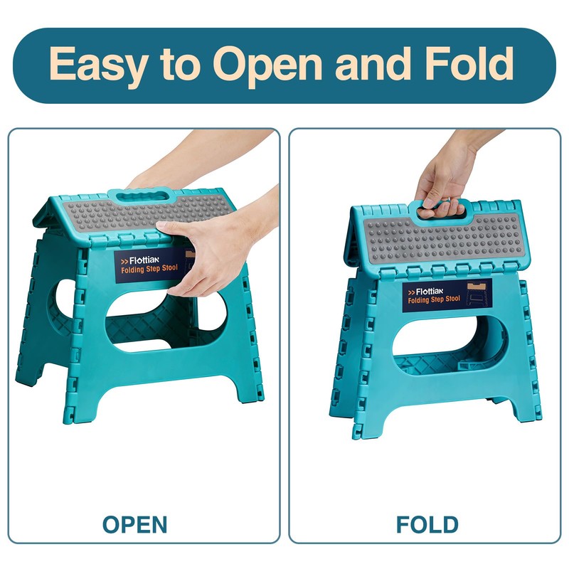 Flottian 11" Folding Step Stool for Adults and Kids Holds Up to 300 lbs,Non-Slip Folding Stools with Portable Handle, Compact Plastic Foldable Step Stool for Bathroom,Bedroom, Kitchen Ocean Blue,1PC