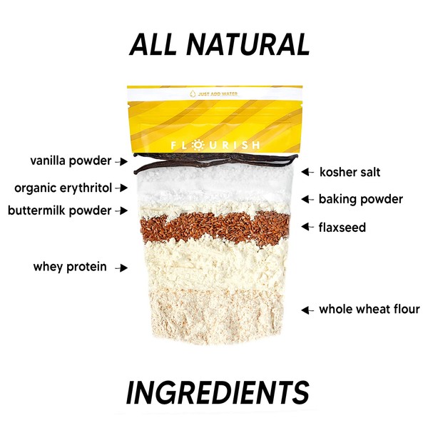 - Easy To Make - Enjoy the convenience of Flourish High Protein Pancake & waffle mix - simply add water, and you will have a nutritious and healthy pancake in minutes. Perfect for anyone on the go or for your busy family mornings