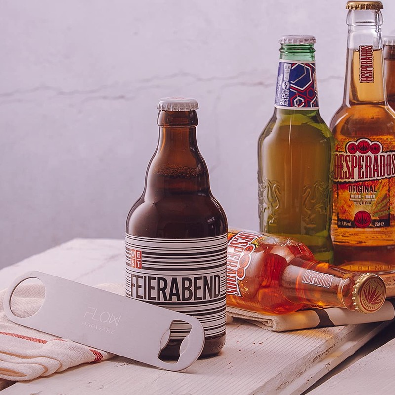 - THE PROFESSIONAL BARTENDER BOTTLE OPENER - High Quality Brushed Stainless Steel 18cm / 7 inches long and just 40mm wide, FLOW Barware logo on one side of the Bottle opener allowing the other side of the Barblade to be personalised or engraved as you wish to make the perfect bar gift