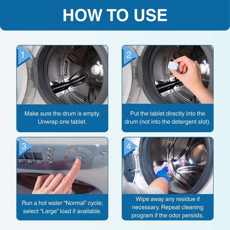- Prolong Your Machine's Life: Suitable for front-loaders, top-loaders, and HE machines, our cleaning tablets assist in maintaining your washer's efficiency with simple, regular use.