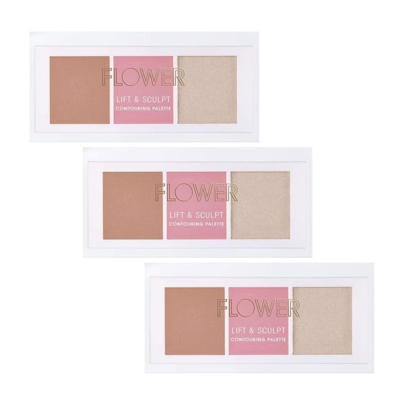 FLOWER Beauty Lift & Sculpt Contouring Palette | Highly-Pigmented All-In-1 Tool | Define Face, Cheeks, Nose and Jawline - Light to Medium (Pack of 3)