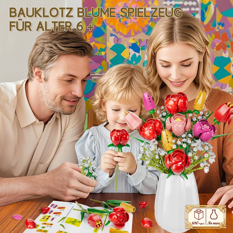 Flower Building Blocks Kit, Botanicals Roses and Tulips - 13-Piece Bouquet of Building Blocks with Flowers, as a Gift for Valentine's Day, Mother's Day or Birthday, for Girls and Boys 6+