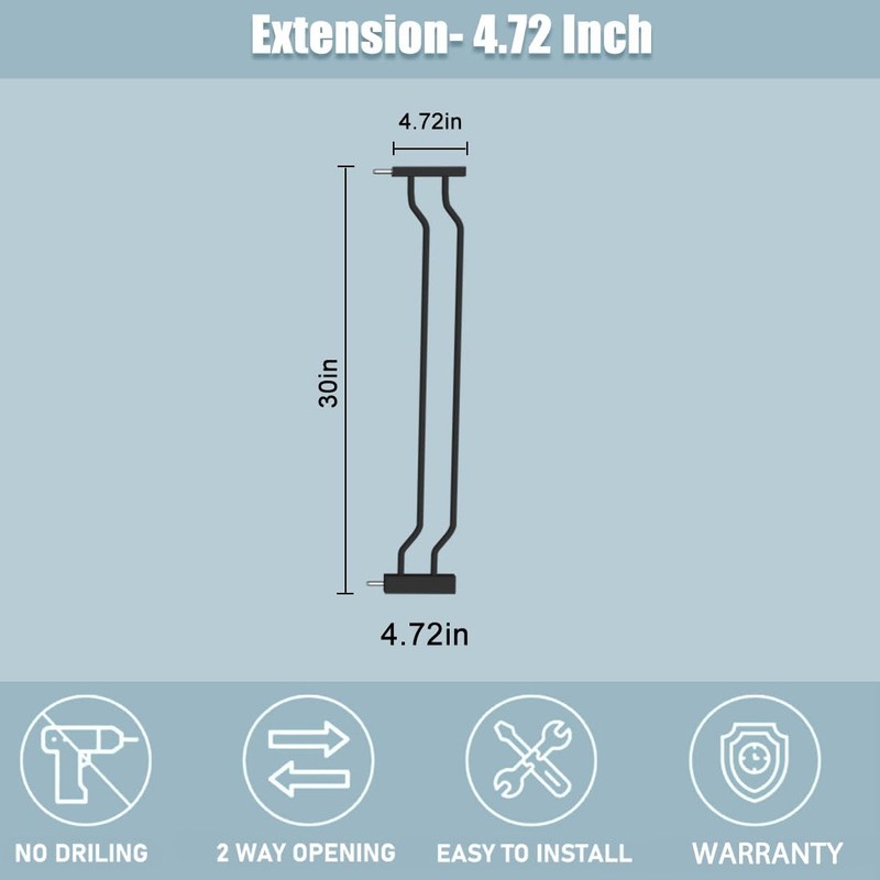 - Extensions Size: Baby gate extensions height: 30.7 inches/78cm;width: 4.72 in/12cm.