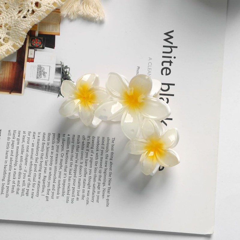 Flower Hair Clips, 3Pcs Summer Claw Clips Plumeria Flower Yellow Gradient Fashion Hair Accessories for Seaside Holiday Headwear