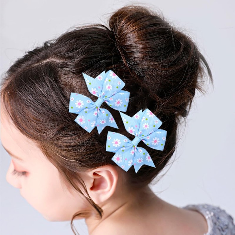 Flower Hair Clips for Little Girls Fresh Blue Floral Hair Bow Clips with Alligator Clips Daily Headwear Hair Accessories No Slip Cute Ribbon Hair Barrette Hairpins for Birthday Holiday Hair Styling