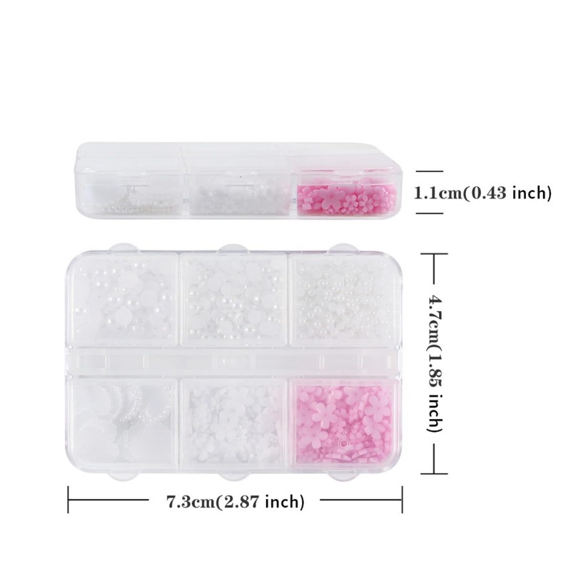 Package Contents: 6 Grids cute white pink floral resin nail art jewelry