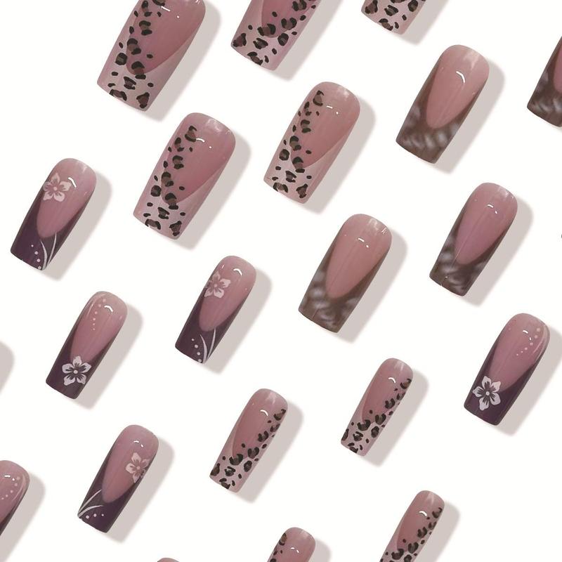 Flower Pattern Fake Nails with Nail File & Jelly Glue, 24pcs Removable False Nails for Women Girls Nail Art, Effortless Press on Nails Manicure Set