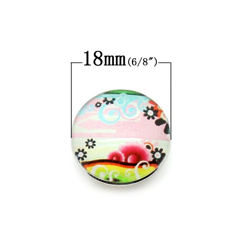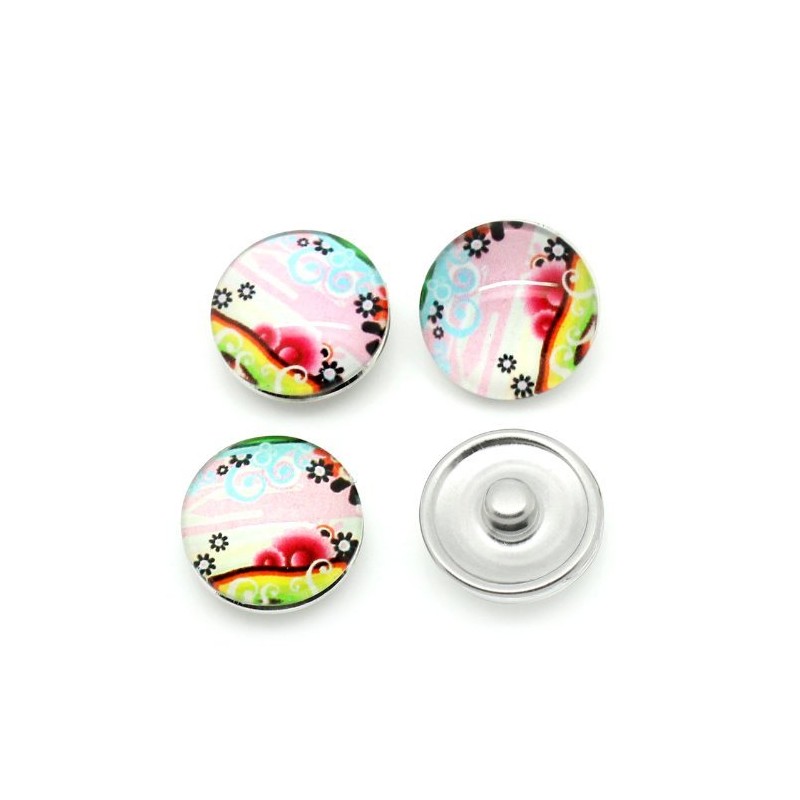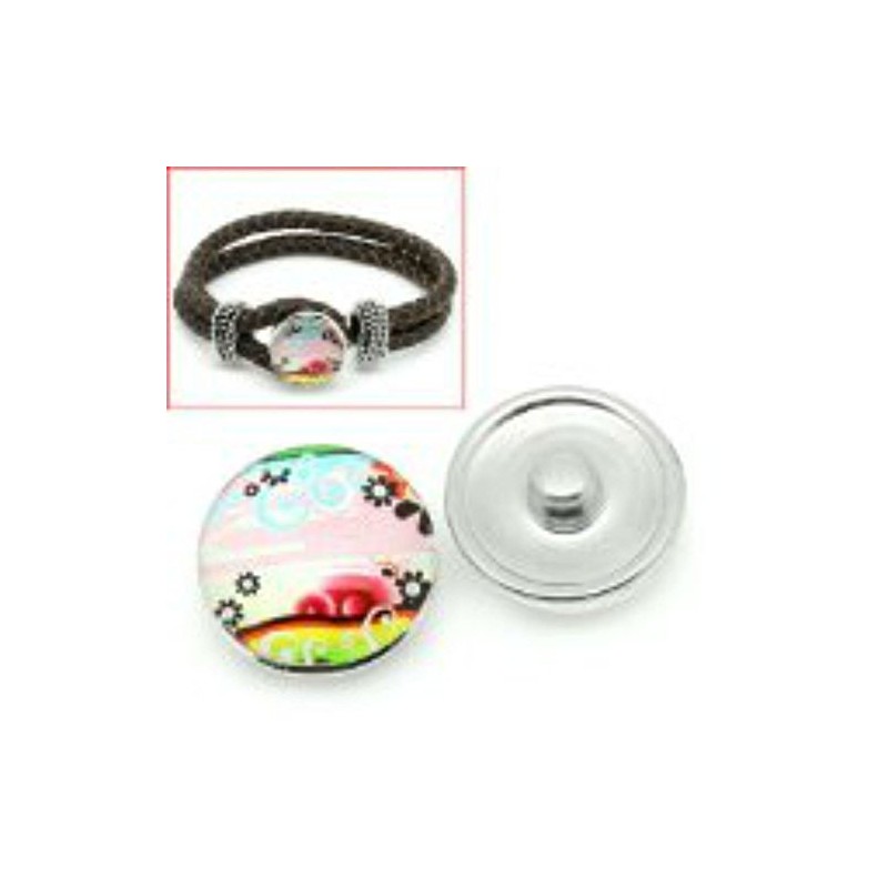 - "Flower Pattern" Glass Chunk Charm Button Fits and compatible with Chunk Bracelet 18mm for Noosa Style Chunk Leather Bracelets
