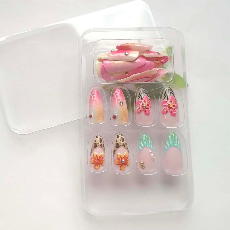 -Product Name:Summer 3D Flower Rhinestone Pearl Fake Nails