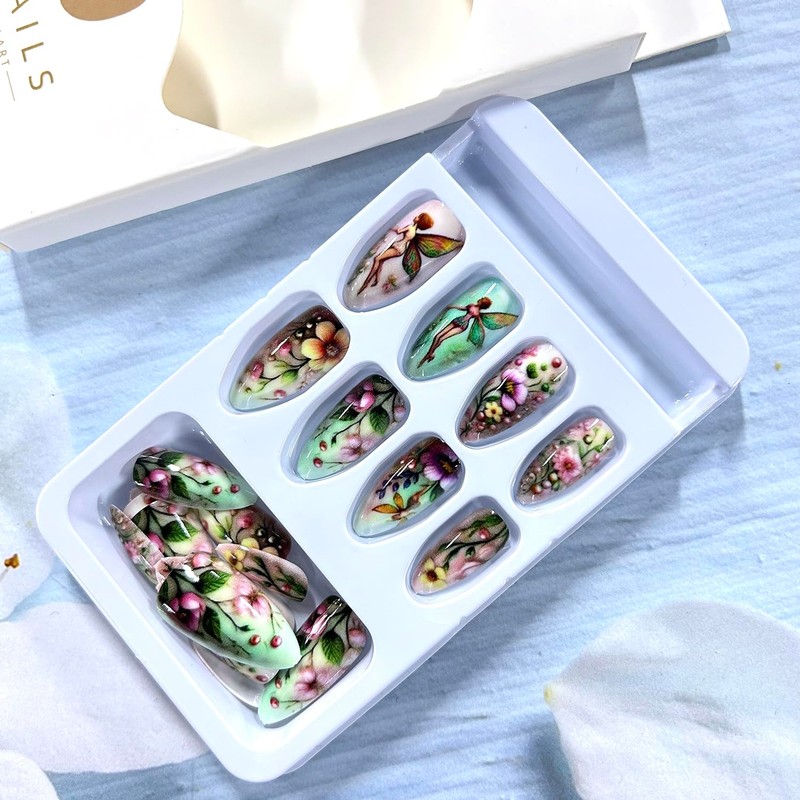 - Fake Nails Design: Our artificial nails use colorful floral and flower fairy pattern design style, give you spring feeling, pretty and comfortable press on nails will give you good mood and add luster to you