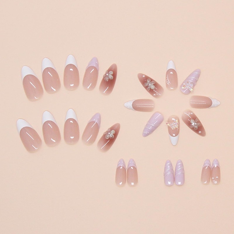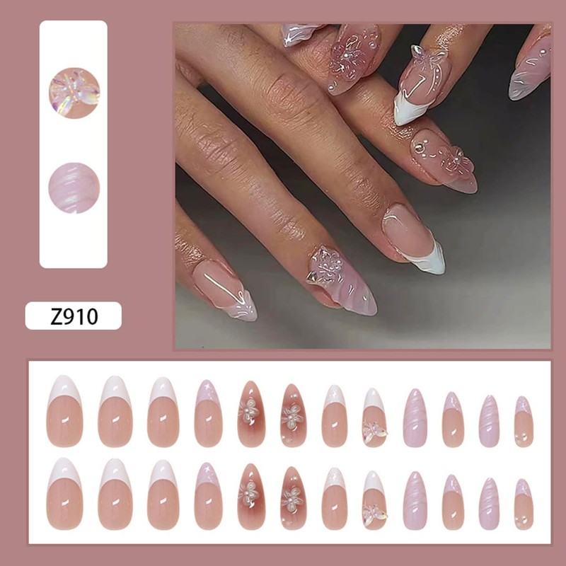- Package Contains:You will get 24 pieces cute flower press on nails,1 piece nail file, 24 pieces nail jelly stickers and 1 piece wooden stick for removing medium almond nails tips. No need to buy other things, you can get the nail salon-like effect