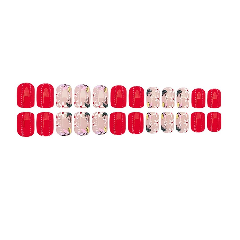 - Package:Our set includes 24 PCS red flower Press on Nails with 12 size ,a nail file,a wooden stick and a jelly glue stickers,providing you with a one-stop nail art solution to easily complete your own nail art design.