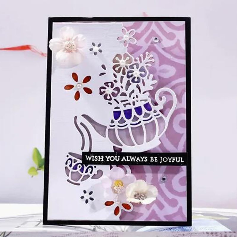 Flower Teapot and CupMetal Die Cuts,Spring Coffee Cup Flower Frame Cutting Di...