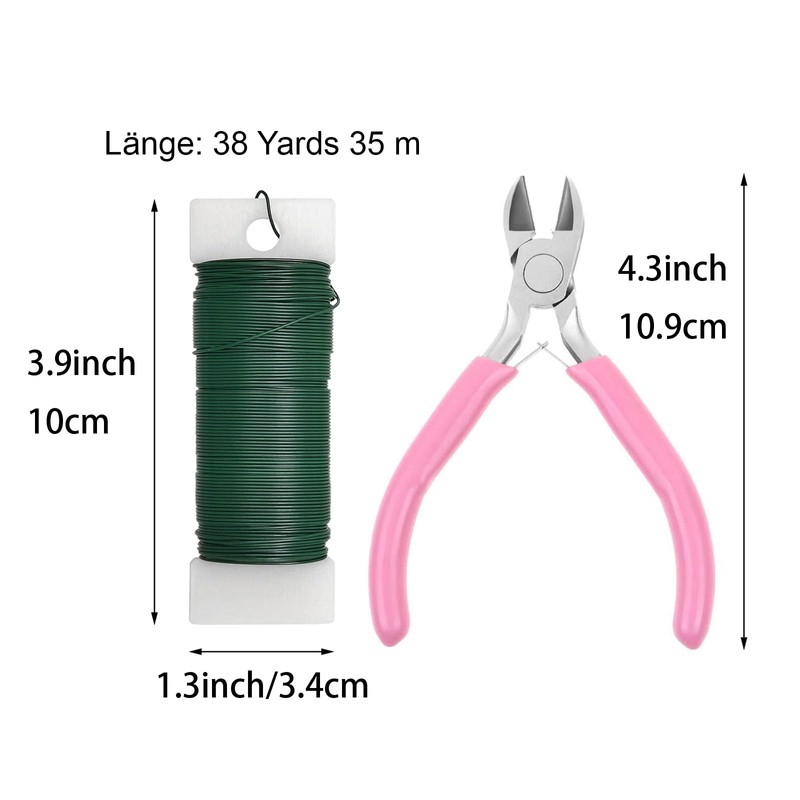 Flower Wrapping Wire Set Flower Wire Pliers and Green Flower Wire for Crafts for Making Christmas Wreaths, Wedding Wreaths and DIY Flower Arrangements