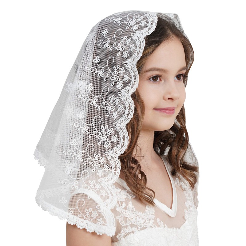 Flowergirl Velo de primera comunión, velo de encaje con borde floral para Grils F5, Marfil, 20"Lx8.3"W