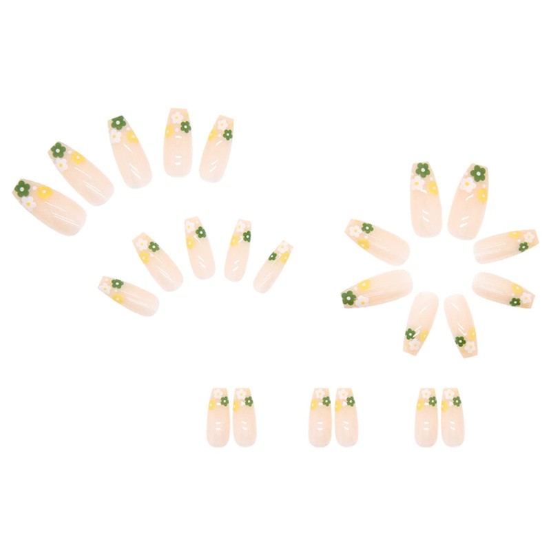 Flowers Artificial Fake Nails for Women Girls, Medium Length Press On, 24Pcs Reusable Full Cover False Kits, Floral Acrylic Design, Glue On for Nail Art