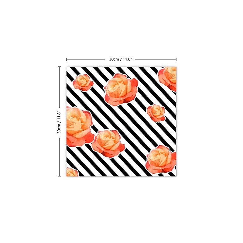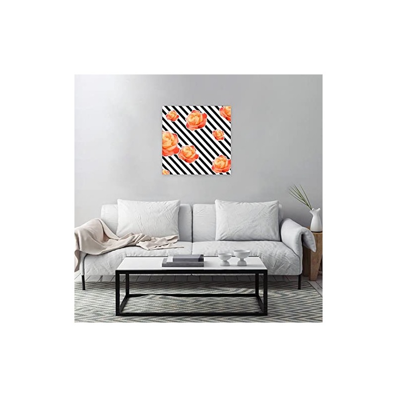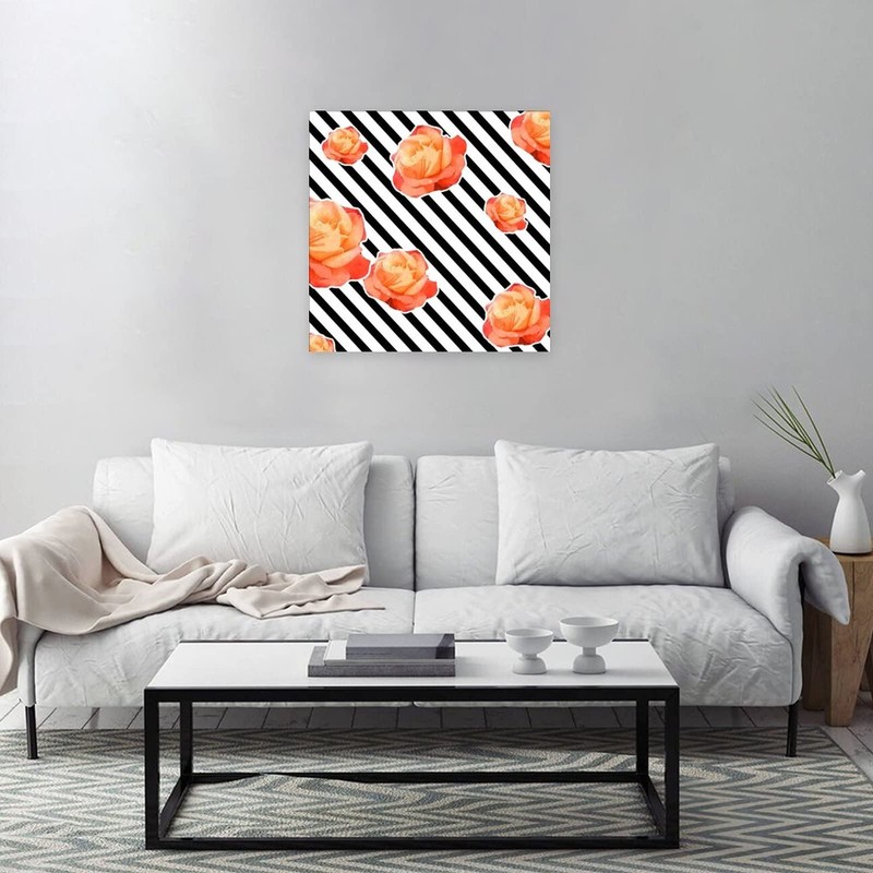 Flowers Stripe Rose Retro Framed Canvas Artwork Shelf Décor Housewarming Gift for House Room 12x12 Inch