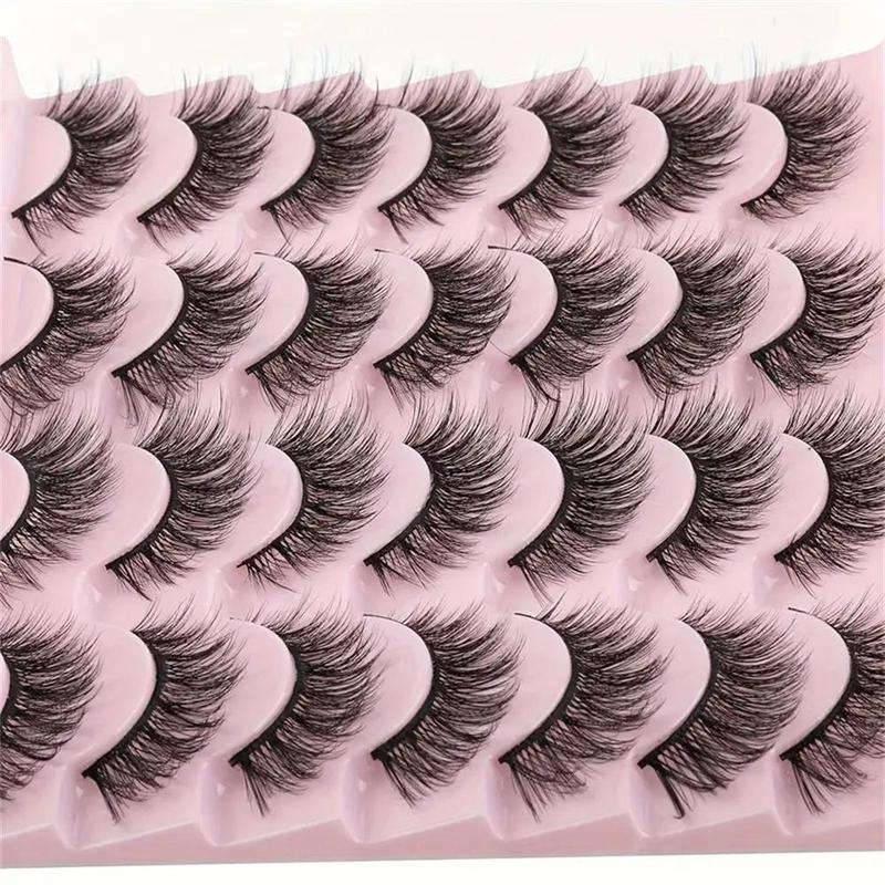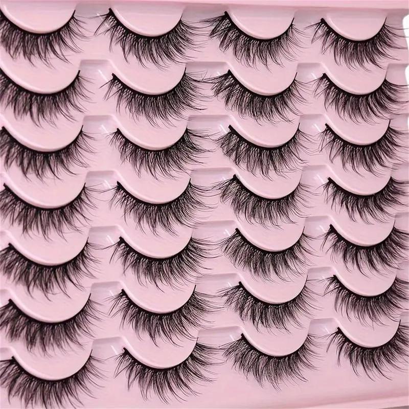 Fluffy Cat Eye False Eyelashes, 14 Pairs Wispy Curling Faux Cluster Lashes, Natural Look Eye Makeup Strip Lashes for Women & Girls Eye Makeup Enhancement, Christmas Gift