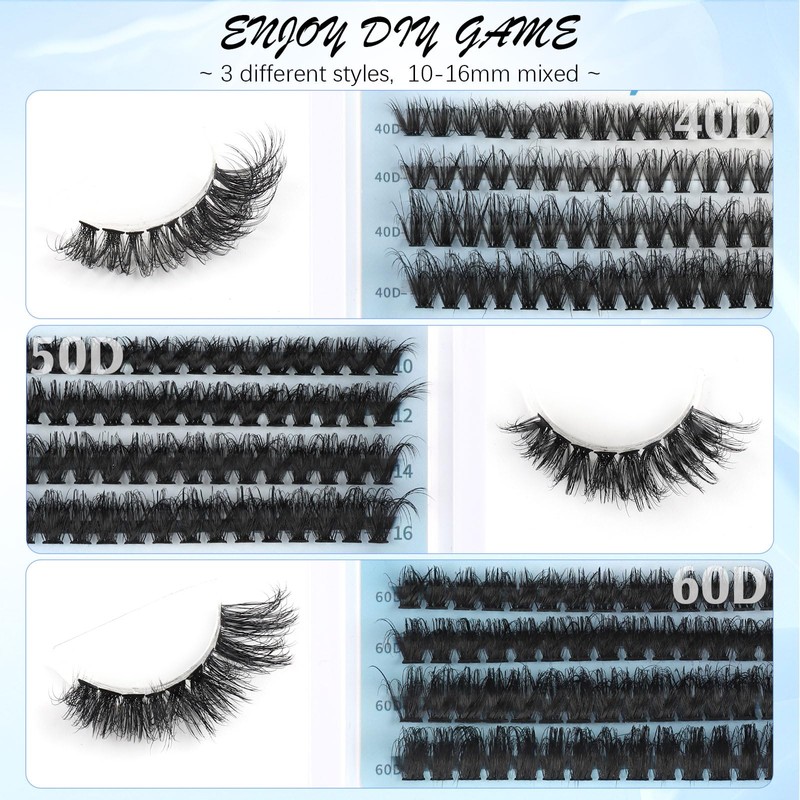 - 40D+50D+60D Mixed Cluster Lashes: Wispy and Fluffy Individual Eyelashes Extension! Including 3 styles and 4 lengths lash clusters for DIY eyelashes extension at-home.You can customize it how you like.