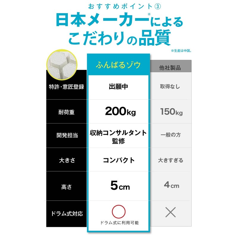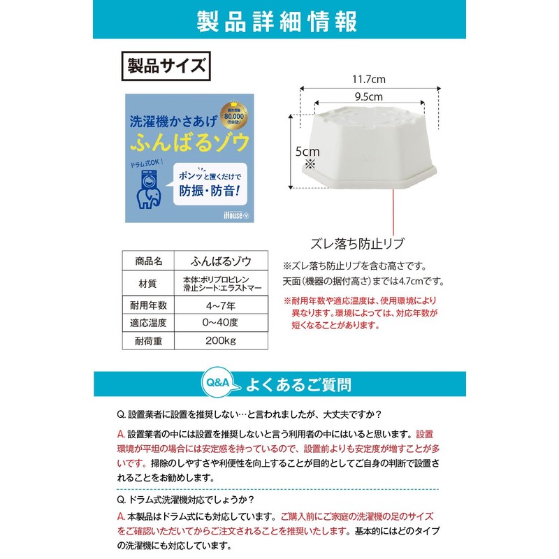 - (Quiet effect that is gentle on family and neighbors alike) Fluffy elephant provides double vibration protection and soundproofing to support a comfortable living environment. Noise reduction up to 16dB for silent use at night In addition, when used with anti-vibration mats (sold separately), it provides an amazing 17.5 dB reduction. Perfect for those who are concerned about the sound of living in apartments or apartments, or if you want to protect a good night's sleep for your family. Absorbs vibrations from appliances and provides a comfortable living environment