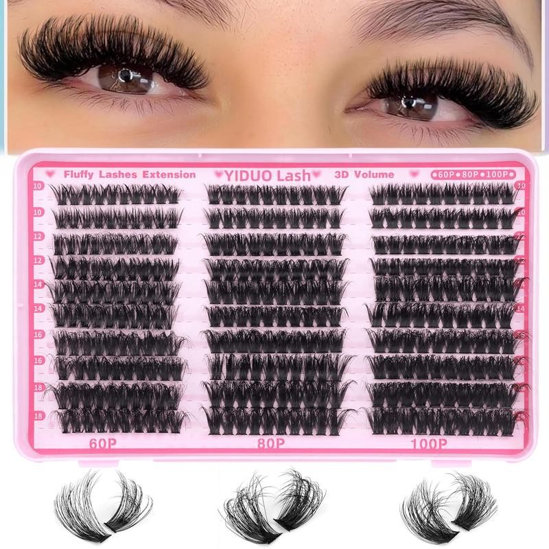Fluffy False Eyelashes, 300pcs/box Individual Lashes Cluster, Natural Look Eyelash Extensions, Self Grafting Curl Eyelashes, Eye Makeup Supplies for Women & Girls, Christmas Gift - Specification: Fluffy Lash Extension Kit, Color: Black