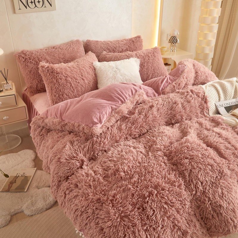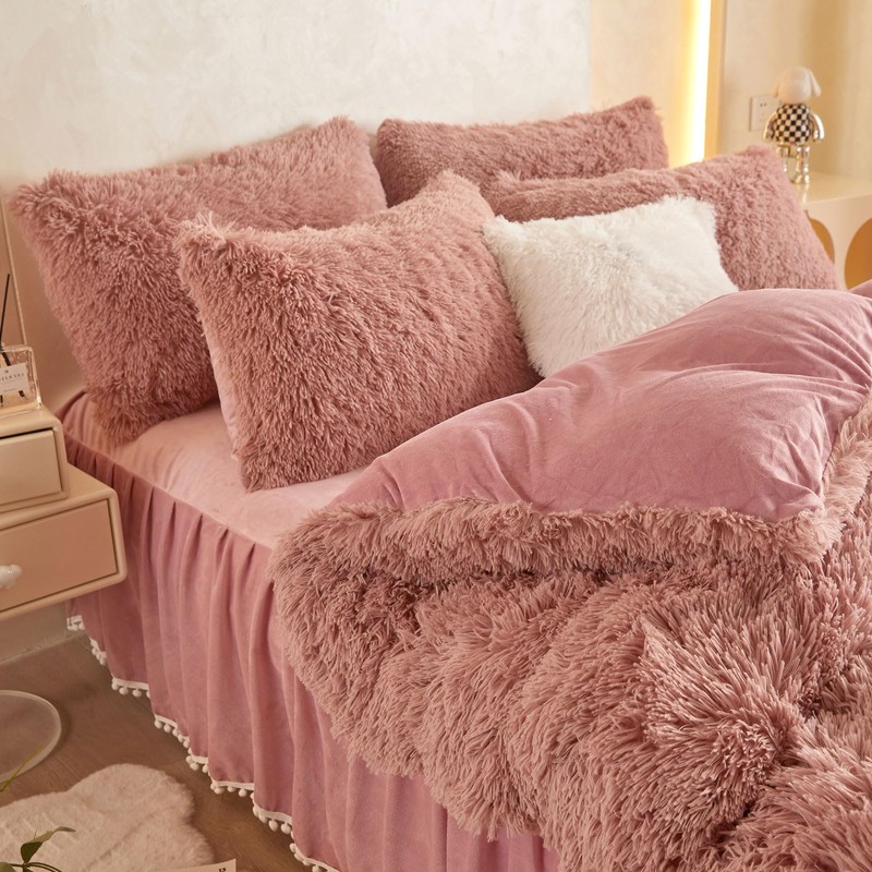 - 【Services and Gifts】HAIHUA old pink bed set is a good gift for your friend in winter. Whether it’s Christmas, Valentine’s Day, birthday or wedding, this faux fur queen size comforter cover for women suit will be a perfect and comfortable gift.appreciate you love our products like our other 5-star reviewers that we offer a 30-day return and replacement service. If you have any questions, please contact us to get a satisfied solution.