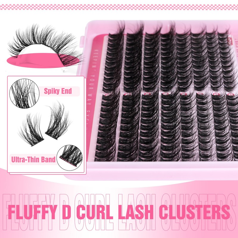 - đžăWispy Lash End & Thin BandăFluffy lashes clusters with wispy tapered-end, which is soft & lightweight. The super-fine lash band of eyelash cluster is thin and comfortable to wear, also too durable to fall apart. The D-curl is nicely provide both volume and softness.