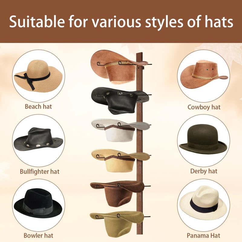 LARGE CAPACITY, SPACE SAVING: This storage rack is a great tool for home storage; it can be easily installed anywhere in the home. Our cowboy hat rack can hold 6 hats, and beautifully displays your good-looking cowboy hats, tweed hats, western hats, beach hats, sun hats, etc.