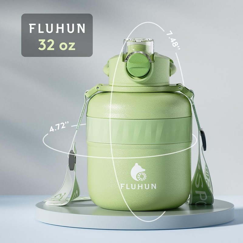 - INSULATED SPORTS WATER BOTTLE: With double layers of stainless steel and advanced vacuum insulation technology, Fluhun 32 oz water bottle keeps your drink HOT for up to 24 hours and COLD for up to 48 hours, allowing you to enjoy icy cold drinks after intense workouts or a cup of hot coffee while winter camping, ensuring the last sip is as fresh as the first.