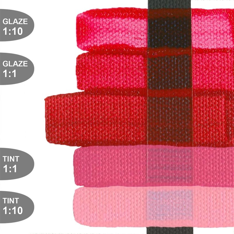- ASTM Lightfastness II (Very Good); Semi-Opaque; Pigment(s): PR5 (Naphthol ITR); Vegan