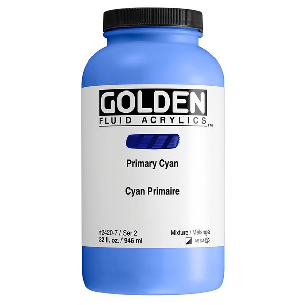 Fluid Acrylics by GOLDEN, Primary Cyan, 32 fl. oz. Jar, Professional Acrylic Paint, Semi-Opaque